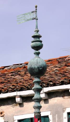 La punta bronzea in cima all’asta. La bandierina reca la data del 1866,