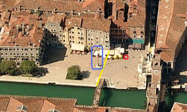 (la linea blu indica l’attuale localizzazione dell’abate, il circolo rosso la collocazione