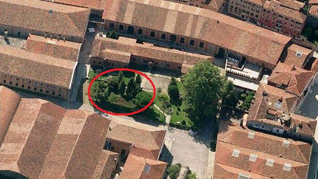 (in rosso l’area del deposito prima delle manomissioni ottocentesche)