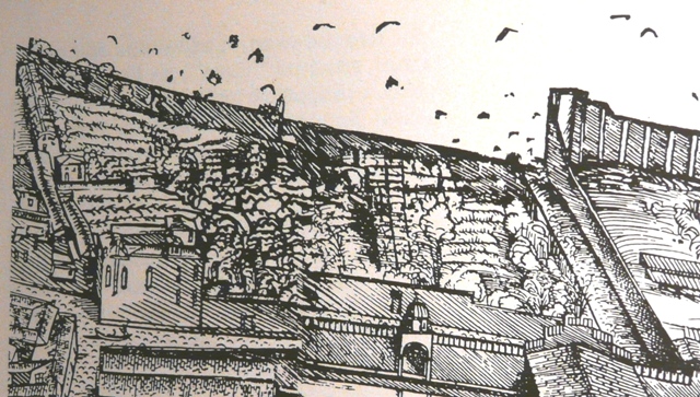 (particolare della veduta di Venezia del 1500 di Jacopo de’ Barbari. In basso al centro il grande Capitello sul muro di confine nord dell’Arsenal