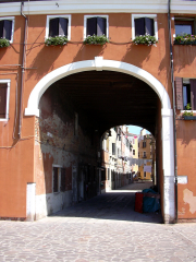 Nulla più sarebbe probabilmente mutato nella sistemazione urbanistica dell'area, se nel 1672, dopo discussioni prolungatesi per la bellezza di più di tre secoli, venne finalmente decisa la realizzazione del nuovo Ospissio de prete Zuane, un piovan della chiesa di San Lunardo (in Contrada San Lunardo, Sestier de Canaregio) che nel lontano '300 aveva lasciato una cospicua somma di denaro a favore dell'Ospissio Orseolo (in Contrada San Marco, Sestier de San Marco) affinchè nel chiostro retrostante fosse ricavato un alberghetto da destinare all'alloggio di quattro povere donne. Tuttavia la sua volontà non potè essere rispettata in quanto nel 1581 tutto l'antico complesso fu demolito e le ospiti spostate in Ospissio de San Galo (in Contrada San Ziminian, Sestier de San Marco). Fu così che alfine la sede ideale venne individuata in prossimità di corte colonne, mediante la soprelevazione dei magazzini poco sopra citati, sui quali in breve vennero ricavati i quattro alloggi, giusta la disposizione testamentaria originaria. Per completare l'opera, nel 1688, con i soldi che ancora erano disponibili nella commissaria di prete Zuane, furono costruite altre quattro case che si aggiunsero alle quattro che formavano l'ospissio. Veniva così completato il grande edificio, un tempo prospiciente sulle acque del canal de San Marco, attraversato dai due profondi fornici che lo caratterizzano, destinati a quel tempo a consentire il passaggio verso la marezana di corte colonne agli abitanti delle rughe formate dalle caxe del retrostante Ospeal de Comun. In preferenza nobili, almeno trentenni e nubili, dovevano essere coloro che entravano nell'ospissio; come si è visto le quattro beneficiate divennero poi otto, sicchè si dovette riconoscere alle quattro che eccedevano la volontà di prete Zuane, del denaro attinto dal fondo ad pias causas. Le quattro case in soprannumero vennero in seguito vendute.