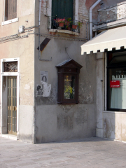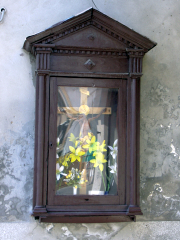 trabeazione, a sua volta sostenuta da due sottili semicolonnine. Manca