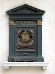 mensola sporgente (in pietra bianca). Una bella cancellata a raggi concentrici