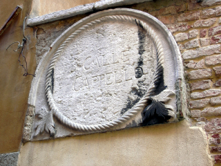 Questa curiosità, dal nome spiritoso e paradossale de el nizioléto de piera (il piccolo lenzuolo di pietra), rappresenta uno degli esempi definibili "minori" della furia antinobiliare che pervase la città poco dopo la caduta della Repubblica, dove a farne le spese furono non solo le immagini del leone di San Marco, ma anche moltissime patere che raffiguravano l'arma di famiglie patrizie veneziane. Oltre al fatto storico, la singolarità però nel disinvolto riutilizzo che della patera in questione è stato fatto in epoca successiva, che spiega, meglio di ogni altro modo, come l'assuefazione al bello possa essere per certi versi deleterio per la sua corretta conservazione, e ciò che in altri luoghi verrebbe considerato importante, in questa città ha un posto nella scala dei valori completamente, e comprensibilmente, diversa. Della curiosità di cui qui si parla: el nizioléto de piera , non ne fanno menzione nè il Tassini nè il Lorenzetti, per vederla è necessario percorrere la lunga fondamenta San Lorenzo in direzione della chiesa di San Lorenzo, arrivare fino alla fine, poi svoltare obbligatoriamente in calle larga San Lorenzo e quindi prima di imboccare a destra calle cappello, sollevando la testa ecco la patera, dove stà inciso il nome della calle, che a sua volta prende il nome dalla poco distante Ca' Cappello.