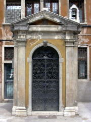 è collocato un bel capitèo in marmo policromo. L'ingresso è